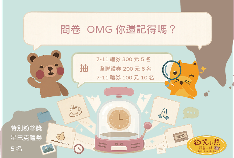 很幸運能夠獲獎,微笑小熊調查小棧每次的問卷都十分生動有趣,每次填完都很期待下一次又會有怎樣的題目。